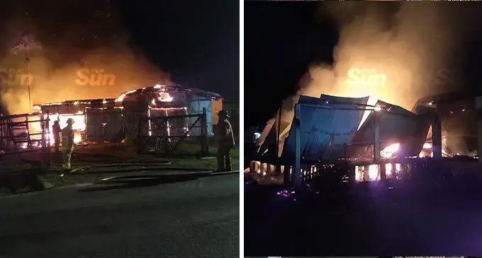Double fire tragedy in a night has left a family of three homeless and a hardware and rice mill building burned to ground.